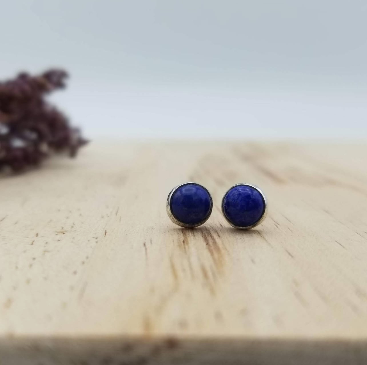 Aretes redondos de plata 925. Hecho a mano por expertos artesanos. La piedra, Lapislázuli proviene de Afganistán, de donde es traída para ser cortada, pulida y engastada en cada pieza.