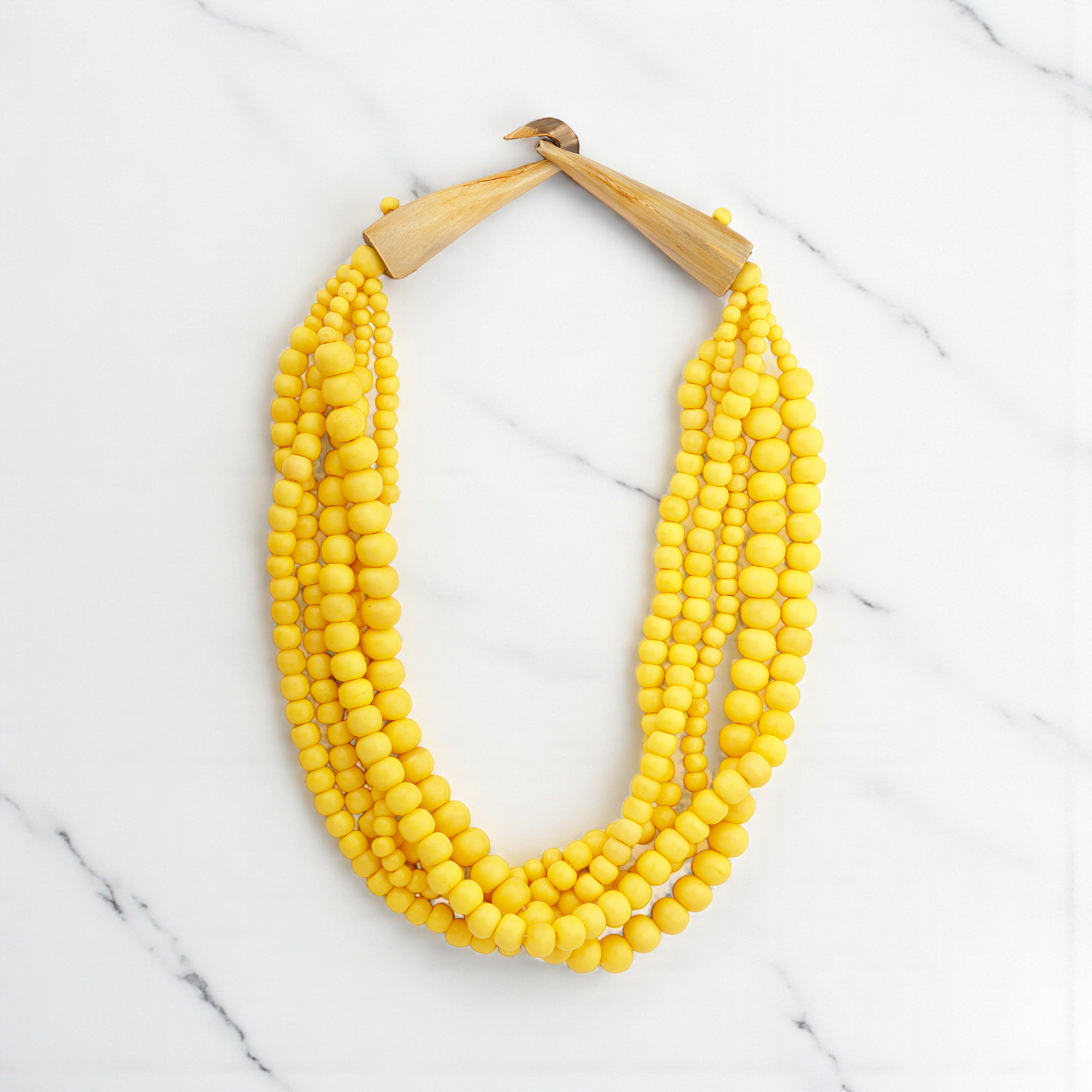 Cuentas de hueso de búfalo indio talladas a mano. El broche de cuerno le da un toque único y especial. El color de tinte vegetal.