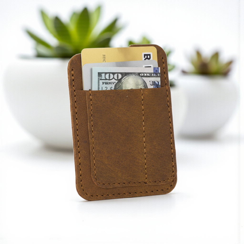 Nuestro tarjetero cuero combina elegancia y funcionalidad. Disponible en dos colores.