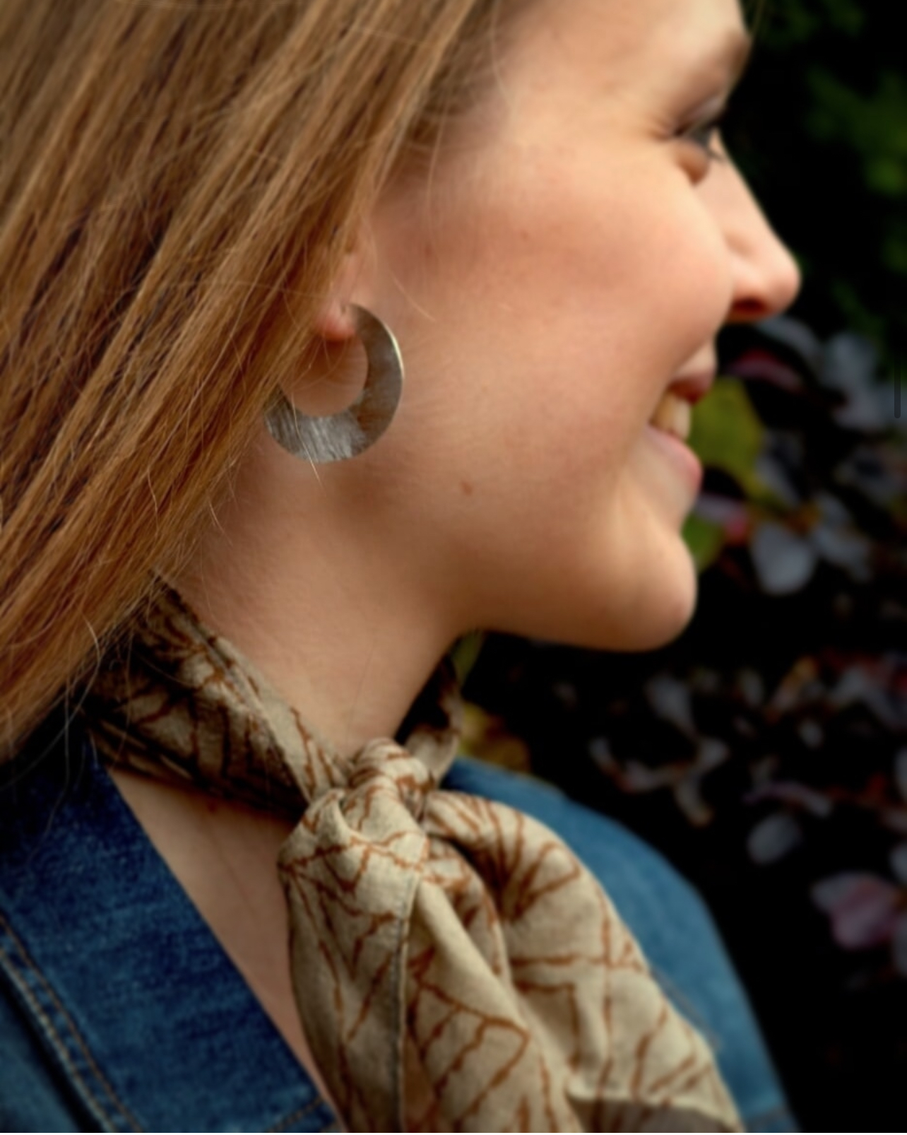 Aretes de media luna bañados en plata. Perfectos para quienes buscan un estilo contemporáneo con un toque artesanal, estos aretes destacan por su acabado refinado y atemporal.